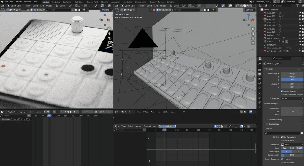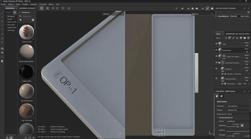 J’ai utilisé Substance Painter pour perfectionner les textures et donner du réalisme aux matériaux. L’idée était de jouer avec des contrastes subtils et des reflets délicats afin de sublimer chaque élément du synthétiseur. Le rendu a été travaillé pour obtenir une surface nette et élégante, tout en préservant la simplicité qui caractérise l’OP-1. J’ai également expérimenté différents éclairages cinématographiques, pour souligner les aspects techniques et design de l’objet. Mon objectif était de capturer l’essence de l’OP-1 en lui donnant une allure presque luxueuse et intemporelle, mettant en avant son côté avant-gardiste.